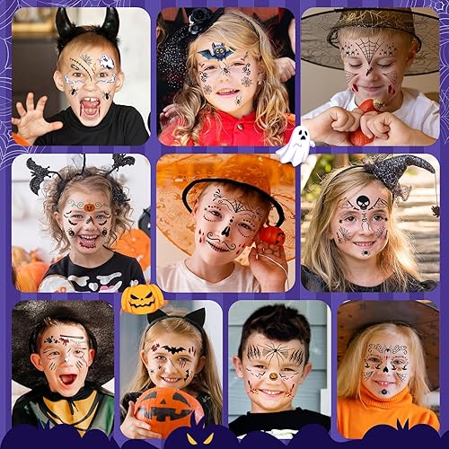 【Face Tattoos for Halloween Decorations】These cute patterns of our face tattoos include pumpkin, bat, web, ghost, scar and other favorite patterns that kids will like. These face temp tattoos will make you unique at the Halloween party!