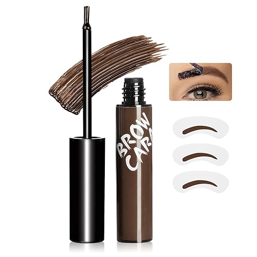 Peel Off Brow Gel, Waterproof Eyebrow Gel Create Fuller & Defined Looking Brows with Eyebrow Stencils for Women & Girl, 1 Pack (Dark Brown)(Gray Brown)