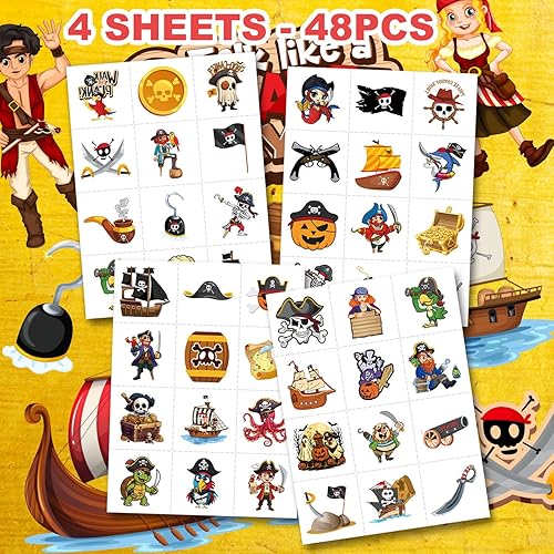 Perfect for Pirate Ship Nautical Mermaids Treasure Anchor Birthday Party Decorations Supplies & Events: Great for themed party, birthday activities, school reward and other party events. This tattoos stickers can be applied on arms, hands, face, neck, shoulders,... to make you look cool at all kinds of party. Popular hit with your kids. You can apply them to your body or some smooth objects, for example, glass, laptop, paper, cups, bottle,..