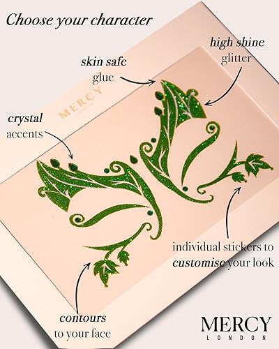 Poison Ivy Leaf Face Jewels by Mercy London Green Costume Accessories Face Gems Jewels All In One Halloween Headpiece Stick On