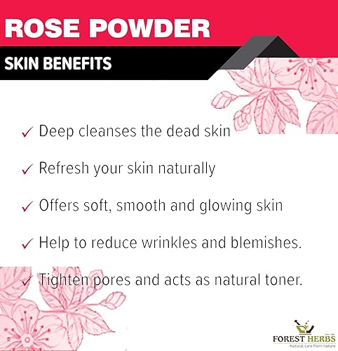 ✅ 100% PURE AND NATURAL: rose powder is 100% natural and is prepared from fresh rose petals which are first washed and then shade-dried. These dried flowers are then processed to form powder in the more natural manner that the nutritive value isn't affected.