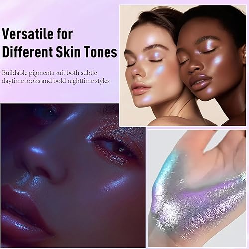 Effortless Application for Any Look: For maximum impact, apply with fingertips to intensify the holographic eyeshadow effect. For a softer finish, use a fluffy brush to blend into skin for an shimmer. The buildable pigments let you customize your highlighter makeup