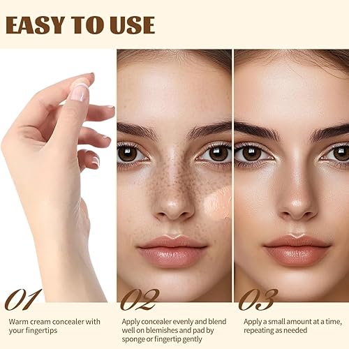 【EASY TO USE】To achieve the best concealing effect, please moisturize your face before use. Use the warmth of your fingertips to soften the cream concealer, then use your fingers, a concealer brush, or a sponge to apply an appropriate amount of blemish concealer to the blemished areas of your face. Apply evenly and blend well. Apply a small amount at a time, repeating as needed, and gently pat concealer to blend for a light, luminous finish.