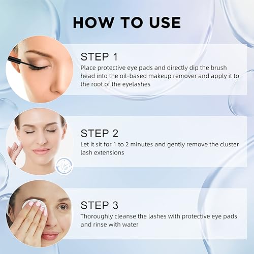 DISSOLVE QUICKLY: QUEWEL oil texture lash clusters glue remover can penetrate deep into the root of the cluster lashes. After saturating the lashes with the eyelash cluster glue remover, wait the lash cluster glue disssolve entirely, gently wipe off and remove the cluster lashes with cotton pad.