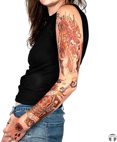 Red Dragon Sleeve Tattoo Set - Ultra Realistic, Easy to Apply 3-Piece Design by Academy Award Winner, Perfect for Cosplay, Festivals, and Self-Expression