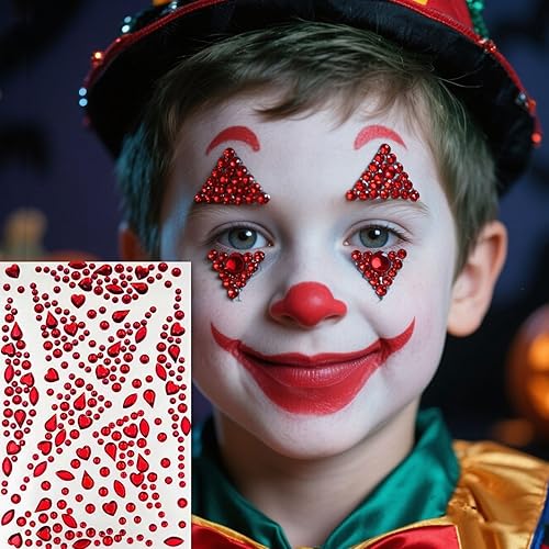 Package contains: You can get 3 Halloween rhinestone face stickers, each with a different design and color. Consists of red and silver. Rhinestones have different designs, including round ones, diamond-shaped ones, triangular ones, and teardrop-shaped ones. Meet your makeup needs for different parties.