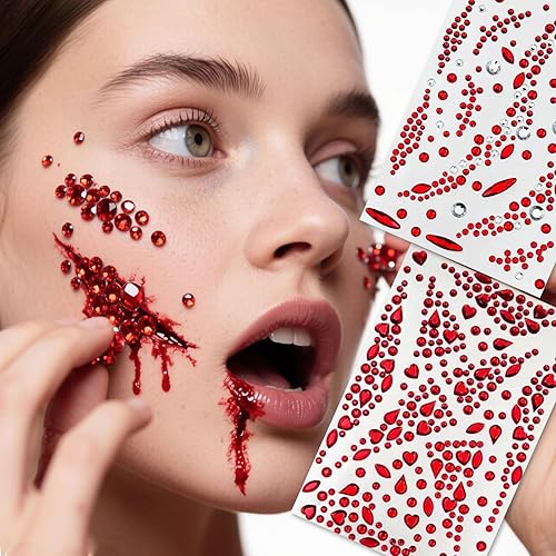 Comment on "Red Face Gems & Blood Stain Tattoos - 3 Sheets Halloween Fake Scars with Rhinestones for Face/Body | Horror Makeup Stickers for Women, Zombie Cosplay, Vampire Party & Costume Decoration (Red & Silver)"