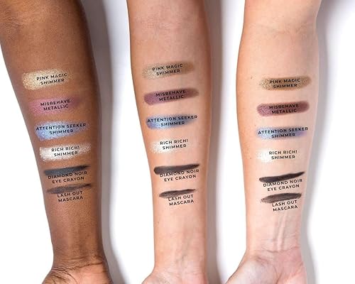 EXCLUSIVE EYE KIT: Contains Be Extra Eye Kit including Diamond Noir Jet Black Eye Crayon, Lash Out Jet Black Mascara, Full Length Two-Sided Applicator Brush & Eye Shadow Quad (Metallic Sparkling Gold, Sparkling Plum, Sparkling Blue Azure, Cool Steel).