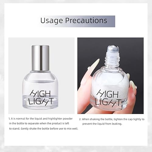 Roll-on Liquid Highlighter, Silver Pearl Shimmer for Face & Body Illuminator, Non-Sticky Long-Wear Glow for Eyes, Cheeks, Nose, Glitter Highlighter Makeup for Women & Girls (2PCS)