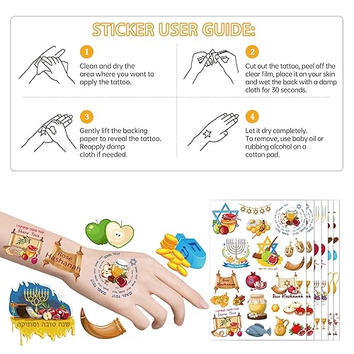 Safe and Skin-friendly: These Jewish New Year tattoo stickers are made of skin-safe materials, gentle on delicate skin, with beautiful patterns, safe for children, kids and teenagers, can be firmly fixed where you want, and ensure that they can be easily removed when needed