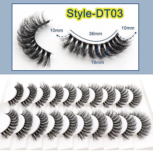 Russian Strip Lashes with Clear Band Looks Like Eyelash Extensions D Curl Lash Strips 10 Pairs Pack (DT03)(10P-DT03)