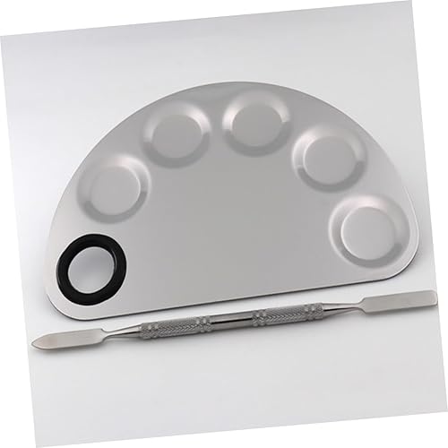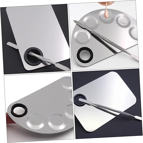SAFIGLE 2 Sets Stainless Steel Makeup Mixing Pallet Cosmetic Tool for Foundation and Nail Art Sturdy Mixing Tray Spatula for Professional Makeup Artists