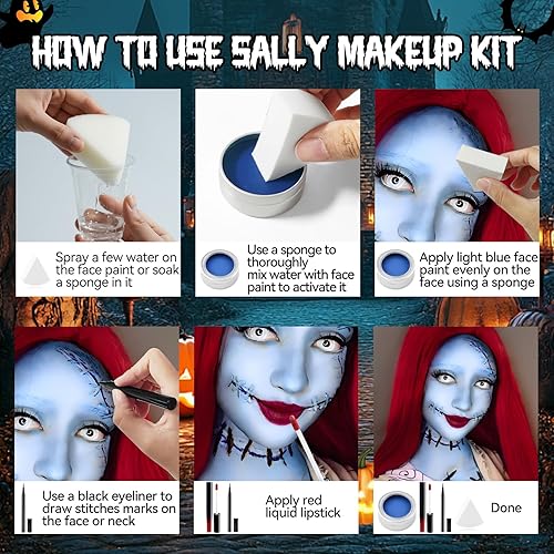 Comment on "Sally Makeup Kit, Sally Face Paint sally's Costume Corpse Bride Makeup Includes Blue Face Paint + Dark Red Lipstick Eyeliner + Sponge Suitable for Halloween makeup Kit"