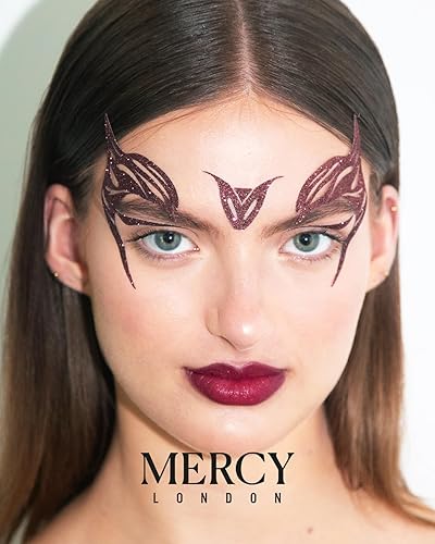 Scarlet Witch Face Jewels by Mercy London Woman Costume Accessories Face Gems Jewels All In One Halloween Headpiece Stick On Burgundy Mask(Small)