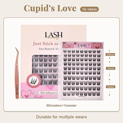 Instant No-Glue Application – Pre- glued lash clusters Achieve salon-quality lashes in seconds with self-adhesive clusters that press directly beneath natural lashes. you don’t need lash glue even lash applicator, you just need a box of self adhesive eyelashes, just take off clusters and put on your natural lashes! Includes Magic Tweezer for precision placement (90 clusters in 10-14mm lengths).