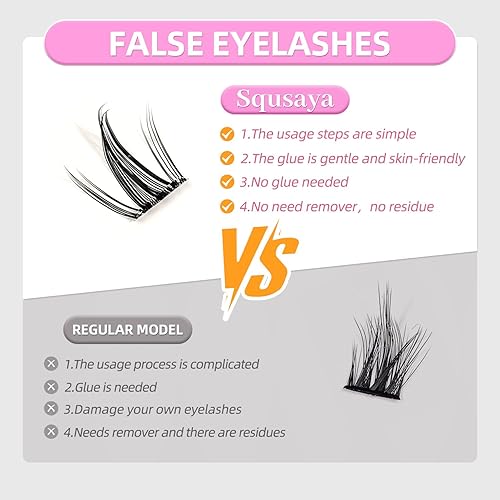 Squsaya glue-free false eyelashes make wearing them incredibly convenient and effortless. No need for complicated glue, simply attach the lash clusters with built-in adhesive strips. A complete look is achieved in seconds, saving both time and effort. Even beginners can easily master these techniques, and there's no need to worry about removal