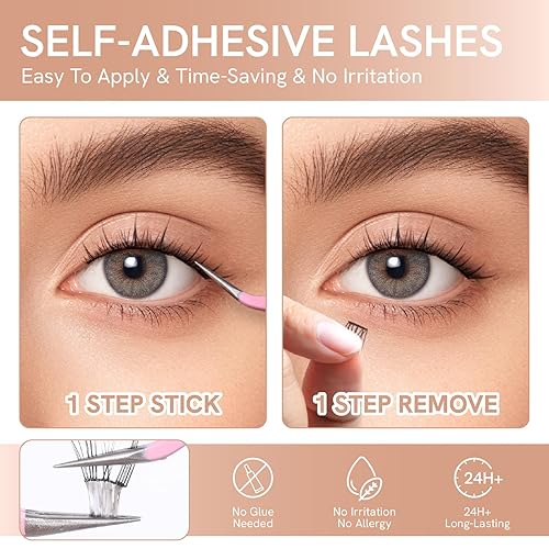 Comment on "Self Adhesive Eyelashes Natural Wispy Clusters Press on Lash No Glue Needed Eyelash 10-12mm C Curl With Lash Tweezers Easy Apply on Lashes for Beginners (Lily Style)(Sunny Style(9-12mm))"