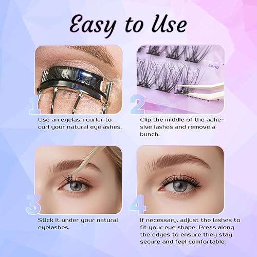 Premium Quality: Made with premium-quality materials, both the eyelashes clusters and the adhesive strips are non-irritating and safe for sensitive eyes. For users with delicate skin or those who want a carefree beauty experience.