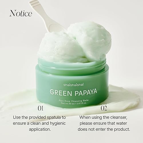 shaishaishai GREEN PAPAYA Pore Deep Cleansing Balm, Makeup Remover, Gentle Exfoliating, Pore Cleaner, Black Head Remover for Face, Oil Cleanser with Jojoba Oil, Korean Skin Care, 2.87oz
