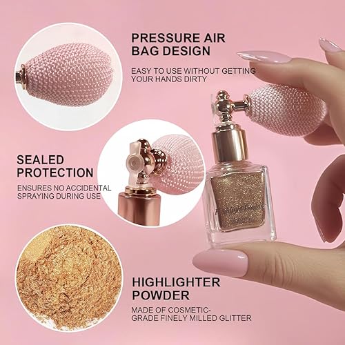 HOW TO USE : Inspired by perfume sprays, our highlighter powder spray comes with an elegant nozzle and an easy - to - squeeze airbag. A simple press of the airbag releases a fine mist of highlighter powder, ensuring even application and making it incredibly convenient to use.