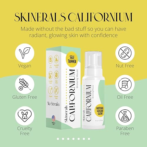 Comment on "Skinerals Californium Self Tanner Mousse & Exfoliating Mitt Bundle, Tanning Foam & Exfoliating Glove, Vegan Sunless Tanner for Face and Body, Quick-Dry, Streak-Free, 8 Oz"