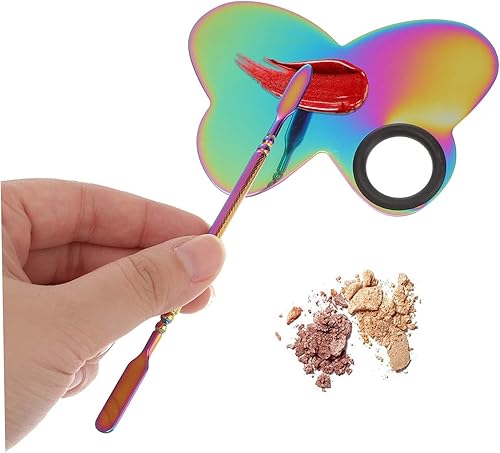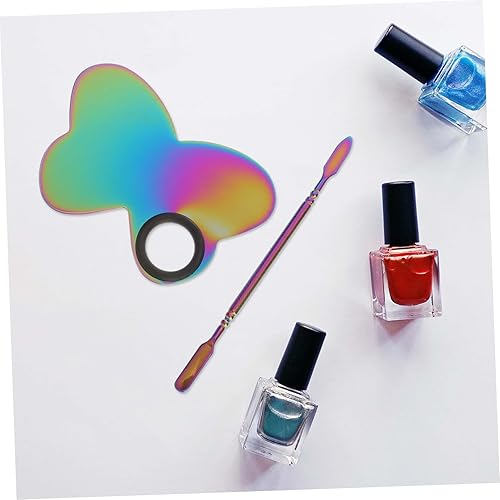 SMASOLO 1set Butterfly Shape Cosmetic Spatulas Nail Art Mixing Palette Stainless Steel Manicure Tool for Blending Colors Lipsticks Foundations and More