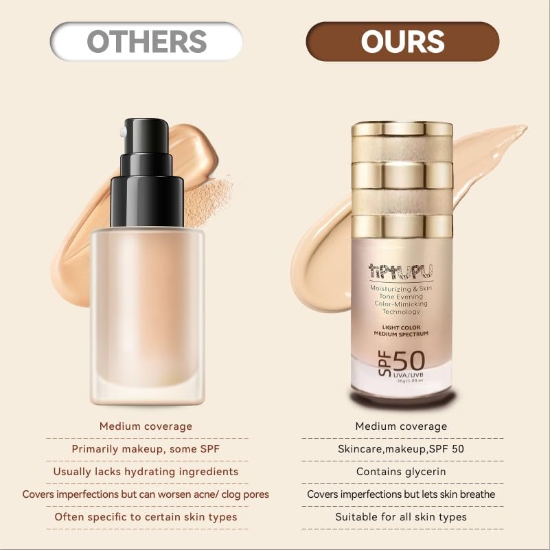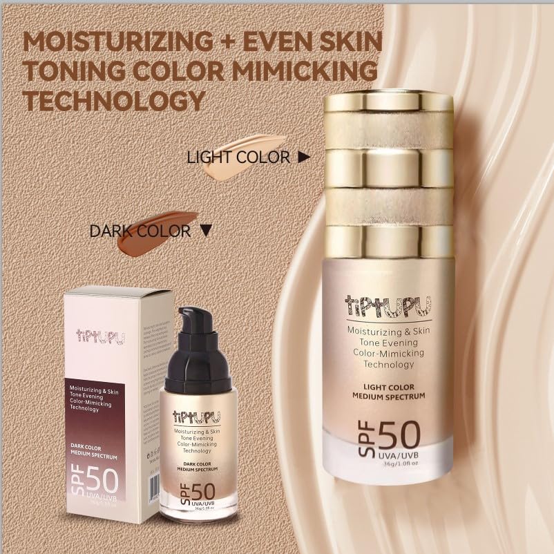 Broad-Spectrum SPF50 Sunscreen & Flawless Coverage Foundation:This 4-in-1 miracle formula delivers high-protection mineral sunscreen while acting as a buildable foundation. It shields against UVA/UVB rays, camouflages imperfections like redness and dark spots, and prevents sun-induced aging—all without clogging pores for dry, oily, and combination skin.