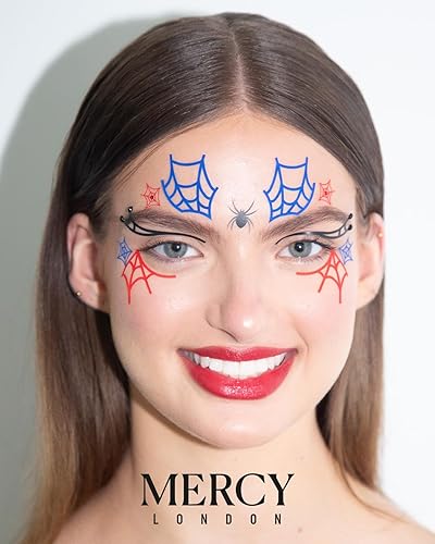 Spiderwebs Face Jewels by Mercy London Red Blue Black Costume Accessories Face Gems Jewels All In One Halloween Headpiece Stick On Spider Man(Red Blue Black)