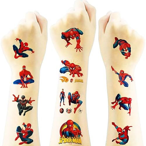 【Easy to Use】: Choose the one you like, and then face down on skin, wet the temp tattoo with water and wait for 10 seconds. Then gently tear off the white surface. You will get a Spidey tattoo!