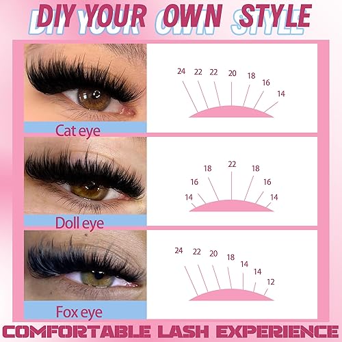 【DIY Lash Extensions】 12-24mm cluster eyelash extensions is perfect for beauty who like volume lash look with a bit of drama. You can easily diy eyelash extension look with less time and money, even if newbies.