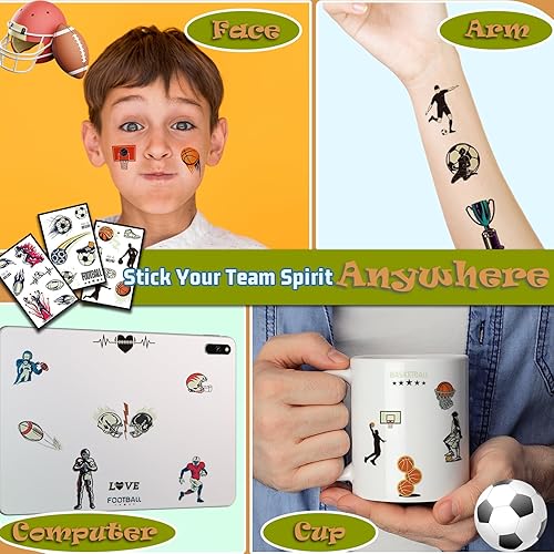 【Sports Tattoos Temporary For Kids】Ideal for sport-themed birthdays, game day parties, class rewards, or carnival booths. Instantly elevates celebrations where sports are the star—no extra prep needed