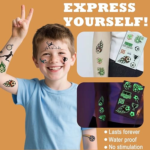 【Tattoos For Kids】Transform evening gatherings! The luminous design shines under party lights, campfires, or outdoor night games—turning any event into a glow-filled sport celebration