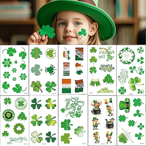 ☘️ 【Multiple Fun Combinations】:This realistic St. Patricks Day temporary tattoos includes 10 unique sheets of St. Patrick's Day face sticker tattoos, each designed with creative patterns to complement your friends' and family's St. Patrick’s Day decorations. With various sizes and designs, these tattoos can be applied to your face, body, arms, hands, neck, and more. They’re the perfect addition to your holiday supplies and St. Patrick’s Day accessories!