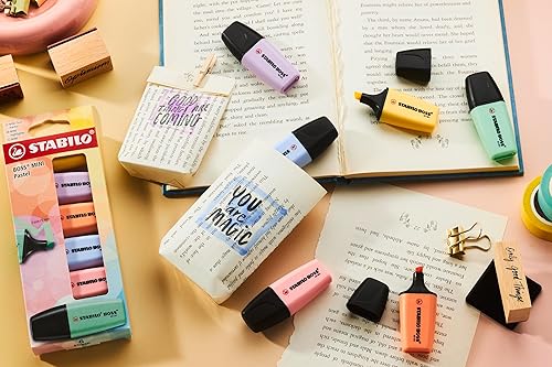 The classic STABILO BOSS MINI in six fun pastel shades for creating low-key highlights