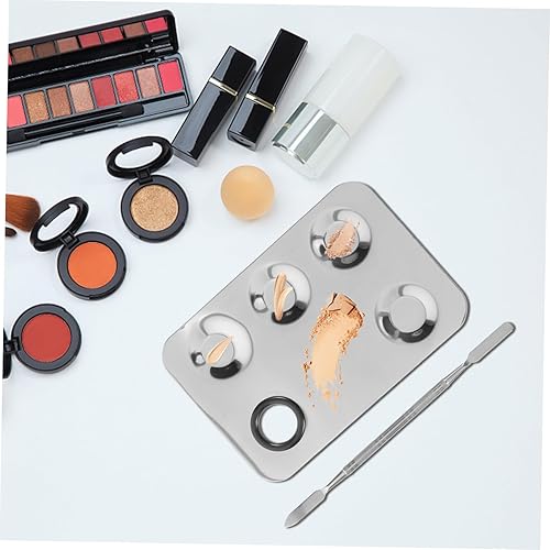 Stainless Steel Makeup Palette Cosmetic Mixing Plate Spatula Foundation Mixing Tray Blending Plate for Nail Art