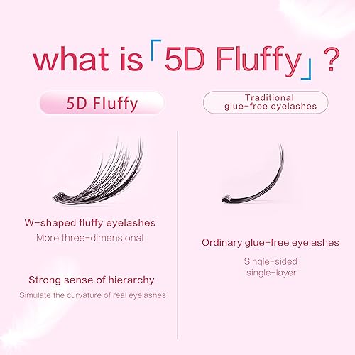 **Press-On False Eyelash Clusters:** Featuring a built-in adhesive strip, these lashes eliminate the need for glue and waiting time. Enjoy a quick, clean application with a mess-free, waterproof strip that ensures all-day wear. Easily removable without any fuss.