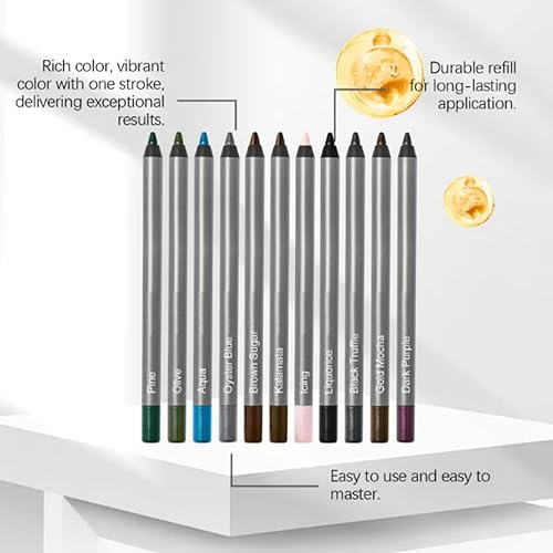 Vibrant Color Selection: Discover 11 vibrant shades, including gold mocha and brown eyeliner options. Each eyeliner pencil glides smoothly for precise lines, artistic accents, or subtle highlights. The rich colored eyeliner selection offers versatile looks for any occasion
