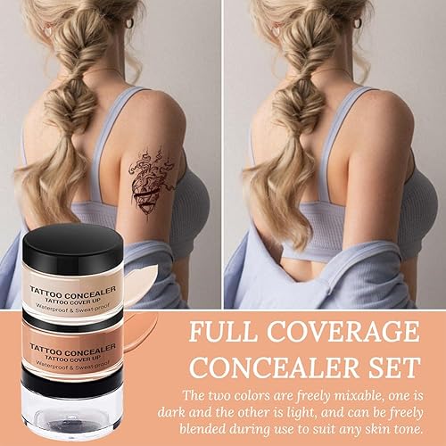 Match Your Skin Color: The tattoo concealer set includes 1 dark concealer and 1 light concealer, allowing you to mix and match for a perfect match to your skin tone. From fair to deep, it blends seamlessly for a natural, invisible finish. Your skin will look flaw-less, like imperfections were never there