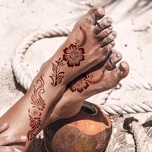 ▶ 【Henna Stencils for Hands】Mehndi Stencils for Hands. Put the henna tattoo template on your hand, and then choose your favorite color of henna paste, such as black, brown red, silver, etc. Once it dries, and then you can see the effect of the tattoo. Tattoo stencils for real tattoos.