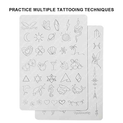 Dual-Sided Premium Designs: The tiny tattoo practice pad features front-side patterns (planets, animals, fruits & geometric shapes) and back-side designs (angel girls & lettering) – perfect for practicing diverse tattoo styles!