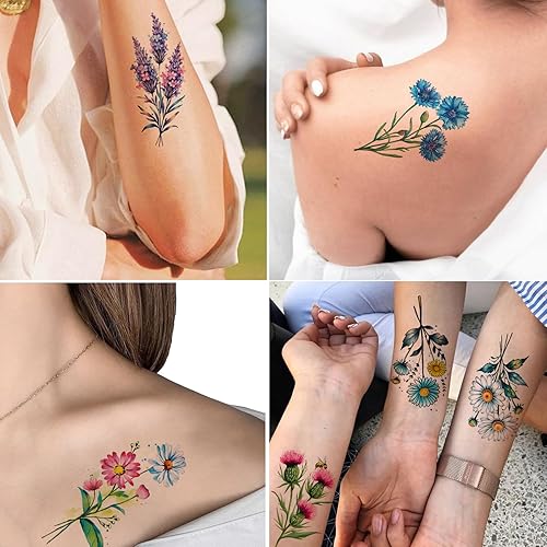 【Realistic Fake Tattoo】 Realistic and sexy colorful flower tattoos, which can be pasted on your arms, shoulders, ankles, wrists, chest, back, feet, hands, etc. anywhere you like to meet your every need, small colorful flower tattoos look Sexy and beautiful, these fake tattoo stickers will make you the star of the show.