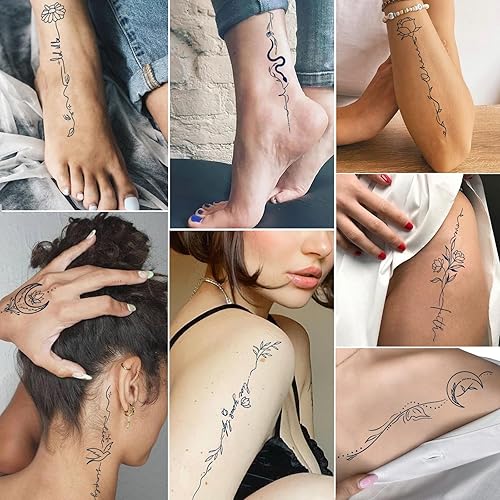 【Long-Lasting Realistic Tattoos】Our line flower text sketch realistic long-lasting fake tattoos are of high quality and long-lasting, just like real tattoos! In addition, these tattoos are non-toxic, non-allergenic, easy to remove, last 1-2 weeks, and are suitable for all ages.