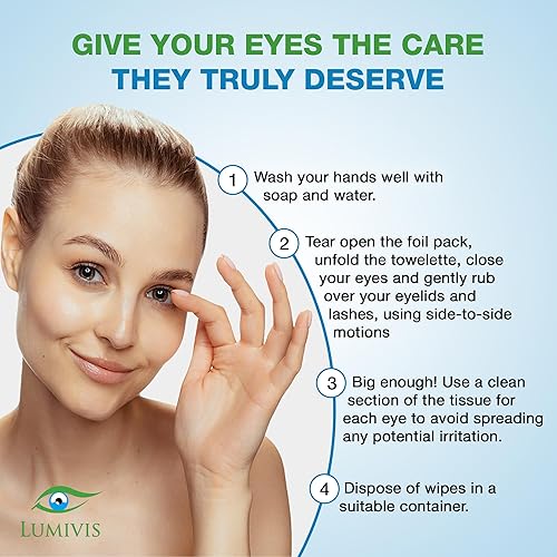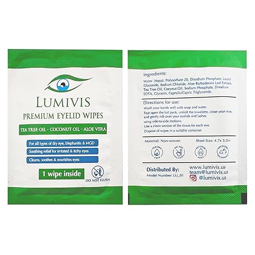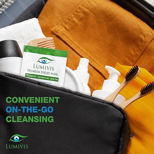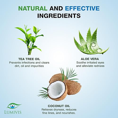 GENTLE DAILY EYE CLEANSING - Lumivis Tea Tree Oil Eyelid Wipes are designed for daily cleansing of eyelids and lashes. Made with natural ingredients like tea tree oil and aloe vera, they help remove oil, dirt, and buildup with ease