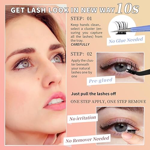 【Advantage】Our Self Adhesive Lash Clusters range aims to simplify the application process for fake or false eyelashes.Just Press-On and Remove One Step to give them a better life.This fake eyelashes is Suitable for all adult women,no matter how old she is,especially beginners friendly