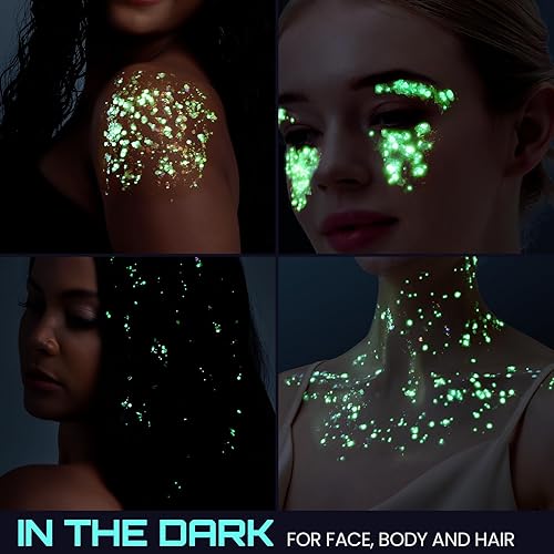 Festival & Event Body Glitter Makeup: Perfect for face, body, hair, and crafts, adding a magical touch to your looks. Ideal for body and face paint at raves, concerts, glowing parties, princess makeup, mermaid party, kids’ birthday parties, proms and Halloween makeup