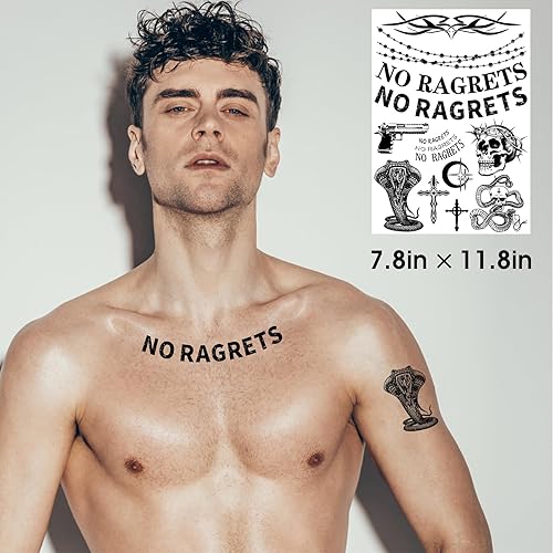 Diverse & Realistic Styles: Each sheet features 10+ tattoos temporary realistic designs, totaling 40+ styles, including fake barbed wire, skulls, "No Ragrets," and more. Whether you want a tramp stamp temporary tattoo, neck tattoo, or spine tattoos for women, this collection has a variety of large and small patterns to suit your style.