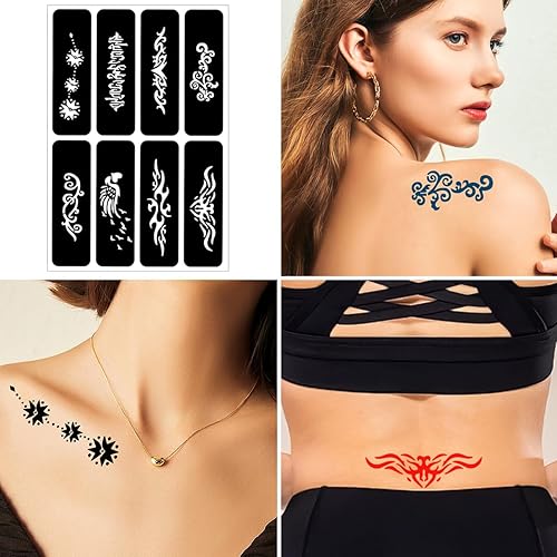 Effortless Stencil Application: Use our stencil stuff for easy designs! Apply adhesive stencils, fill with ink, and peel away. Create fake tattoos or henna art in minutes – no pain, no mess. Ideal for beginners