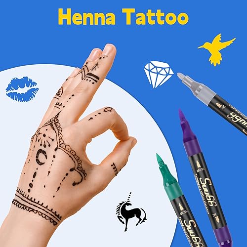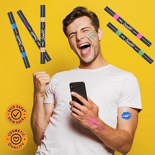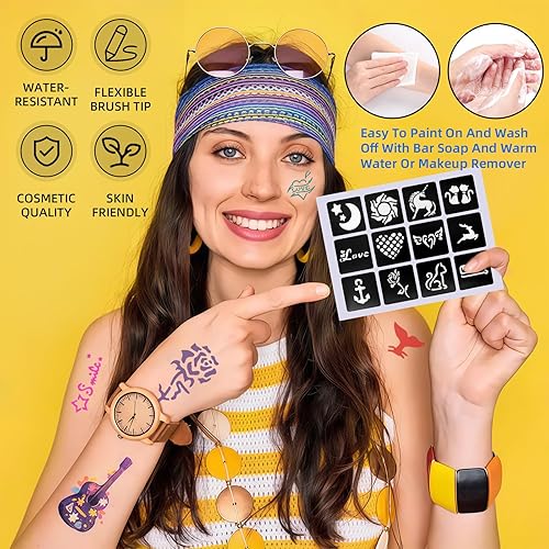 【Ultimate All-in-One Kit & Massive Stencils】 Unleash your creativity with our complete body art set! Get 16 dual-ended temporary tattoo markers and a huge collection of 80 large, pre-designed stencils. Everything you need to create amazing professional-looking tattoos is right here, providing hours of fun for parties, festivals, holidays, or just a creative day at home.