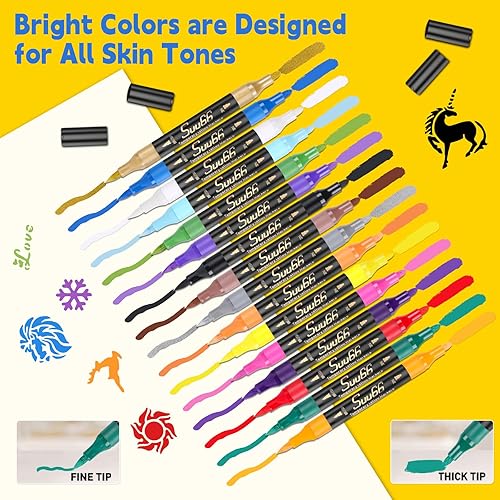 【Skin-Safe & Non-Toxic Formula】 Safety and comfort are our top priorities. Our markers are made with a skin-safe, cosmetic-grade formula that is non-toxic and gentle on the skin. They are specifically designed for direct skin contact, making them safe for both kids and adults to use. (*As with any cosmetic product, we recommend testing on a small area of skin first.)