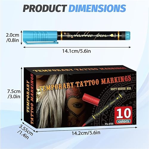 【10 Vibrant Colors】 Set includes 10 bright, vivid tattoo markers perfect for temporary tattoos, body art, and fun face-painting designs.